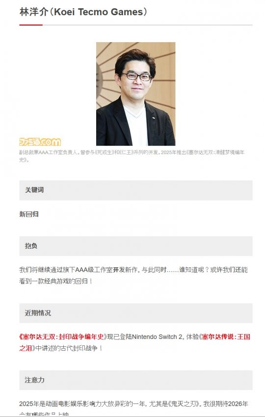光荣特库摩AAA游戏工作室负责人早矢仕洋介透露,他们或许正在研发一款充满神秘感的怀旧风格游戏。