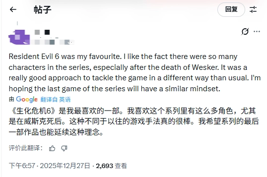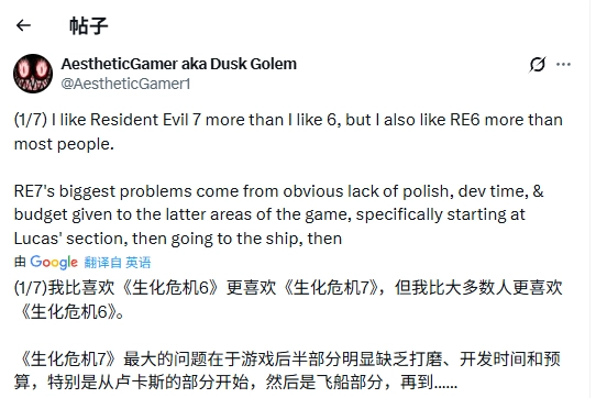 此前爆料过里昂回归的知名舅舅党@AestheticGamer1也表示:“比起《生化危机6》我更喜欢《生化危机7》,但同时我也比大多数人更喜欢《生化危机6》。