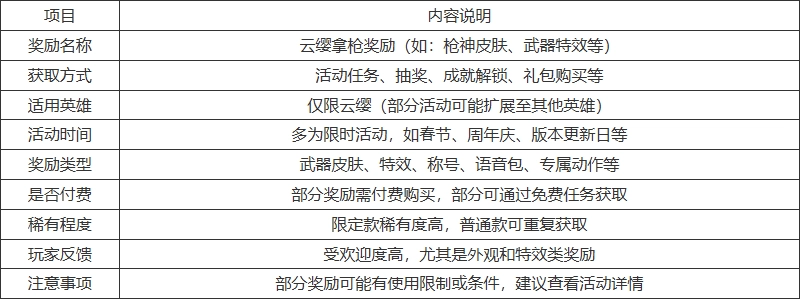 3. 适用对象:适用于所有拥有云缨的玩家,部分奖励可能有等级或段位要求。