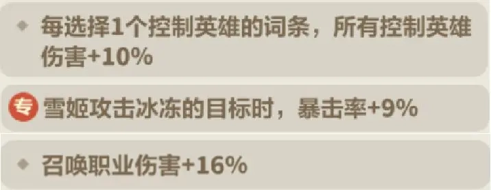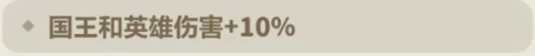 提供覆盖国王和英雄的增伤,全职业通用,属于万金油类型。但增伤幅度较为有限,在词条选择充裕时会被更专精的词条替代。