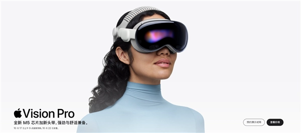 2025款VisionPro采用全新双圈编织头带,首发搭载苹果M5芯片,10核CPU(4性能核+6能效核)、10核GPU,配备16核神经网络引擎及硬件加速光线追踪技术,内存带宽达153GB/s。