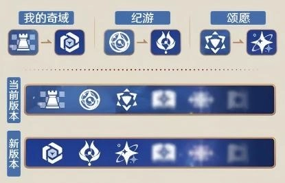 调整优化了千星奇域界面顶部「我的奇域」、「纪游」、「颂愿」的图标表现。