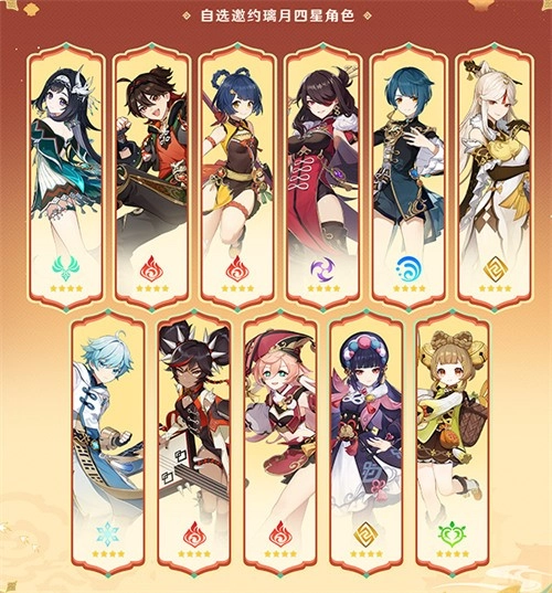 可从璃月所有四星角色中自选一名角色获得。