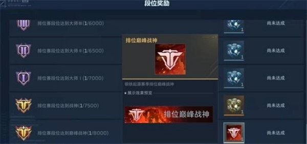 新增段位系统:青铜 → 白银 → 黄金 → 铂金 → 钻石 → 大师 → 战神 → 巅峰战神