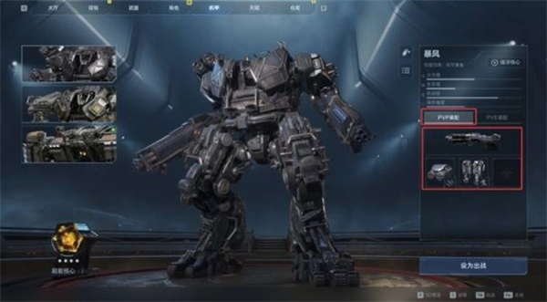配置与猎场/时空追猎不同,必须使用PVP专属机甲配置