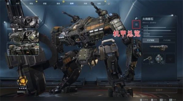局内无法更换武器或挂件,只能查看机甲总览