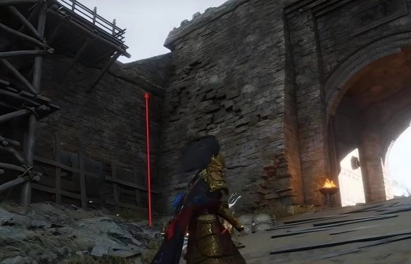 7、过来后,从箭头处的位置上城墙。