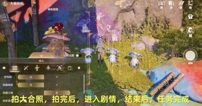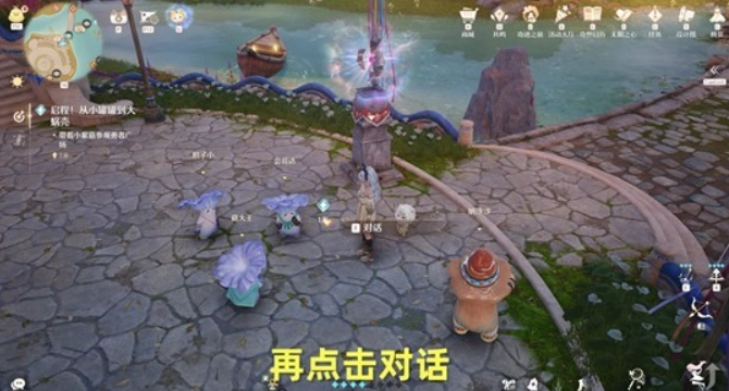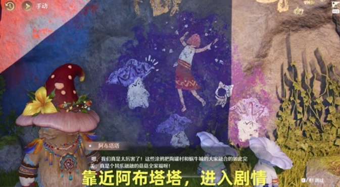 找到菇大王,胆子小和会说话三个菇,点击对话,接取任务;