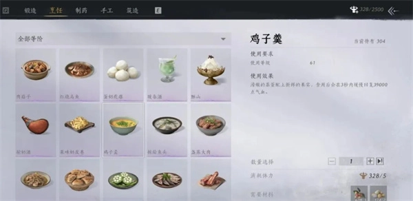 的配方,体力用来做鸡子羹(体力查看:设置-包裹-制造)。