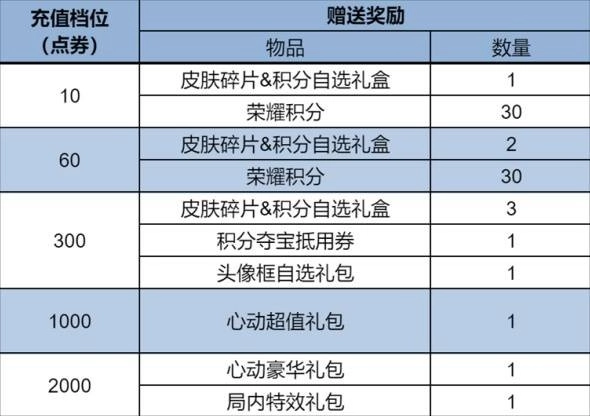 皮肤碎片&积分自选礼盒:打开礼包可任意选择以下奖励之一:荣耀积分*10或皮肤碎片*1