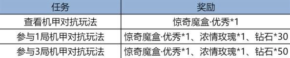 活动期间参与机甲对抗玩法领惊奇魔盒、浓情玫瑰等奖励!