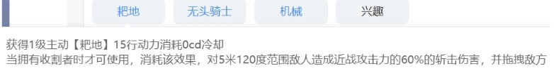 固定特性给的额外主动技能,当自身或队友击杀敌人,无头骑士获得收割者buff时才能释放。