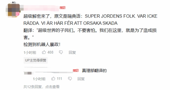 说正经的,这两段都是用ASCII码加密后的瑞典语,翻译一下就是:“超级世界的子民们。不要害怕。我们在这里,就是为了造成损害”,以及“我们被你们的领导者欺骗了。他们说的话不是真的。我们想要和平。”
