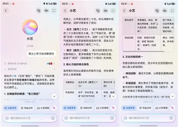 小艺的贴心,藏在小年的每个细节里。TA不仅能聊天懂方言、科普习俗,还能处理多任务、协同鸿蒙应用智能体搞定衣食住行,只需动动嘴就能轻松实现。南北小年的差异,从来都是文化的多元魅力而非隔阂,小艺没有刻意 “弥合差异”,而是精准契合了年轻人的小年需求:不想被琐事牵绊、不想让亲情生疏、不想缺仪式感。