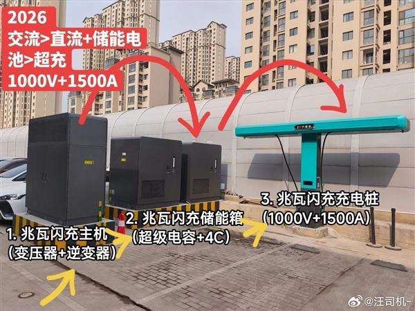 据官方介绍,比亚迪兆瓦闪充桩是全球首款量产乘用车全液冷兆瓦级充电终端系统,核心亮点为三“千”指标,即1000V电压、1000A电流、1000kW功率。