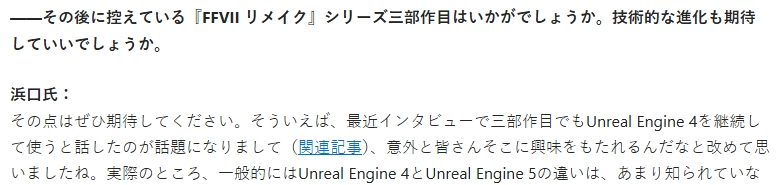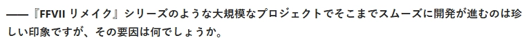 日前SE《最终幻想7重制版》第三部的核心开发者在接受采访时,谈及了该作未升级虚幻引擎5的原因,而这也是其开发得以顺利推进的重要因素之一。