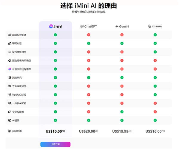 相较于海外备受关注的Genspark、MiniMax和Manus,imini拥有独特的“模型聚合”能力,能把GPT-5、Gemini2.5Pro、Grok4、Claude4等热门AI整合成智能工具箱。
