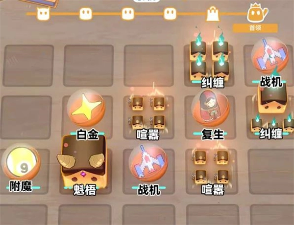 5、魔王挑战天外来客:摆放位置参考图示,卡组需选定异世众魂,尽量多放置喧嚣魂灵,持续刷取觉醒卡,将所有BUFF效果施加给魁伟魂灵,双白金之星带来的攻速加成作用十分关键。