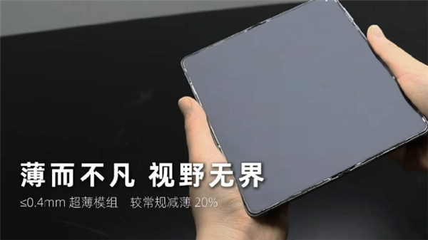 这款无迹折叠屏的核心突破首先在于轻薄化设计,其模组厚度不超过0.4毫米,比常规模组减薄20%,这不仅使终端整机更轻薄、更易握持,还从根本上优化了折叠区的应力分布,减轻了开合时内部材料的拉扯与挤压,防止屏幕长期使用出现变形。