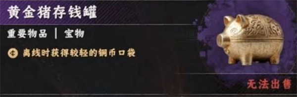 黄金猪存钱罐会不停存储铜币,每次下线之前在背包中点击使用,就会在离线期间不断获得铜币,下次上线时就能在背包里获得许多铜币口袋。