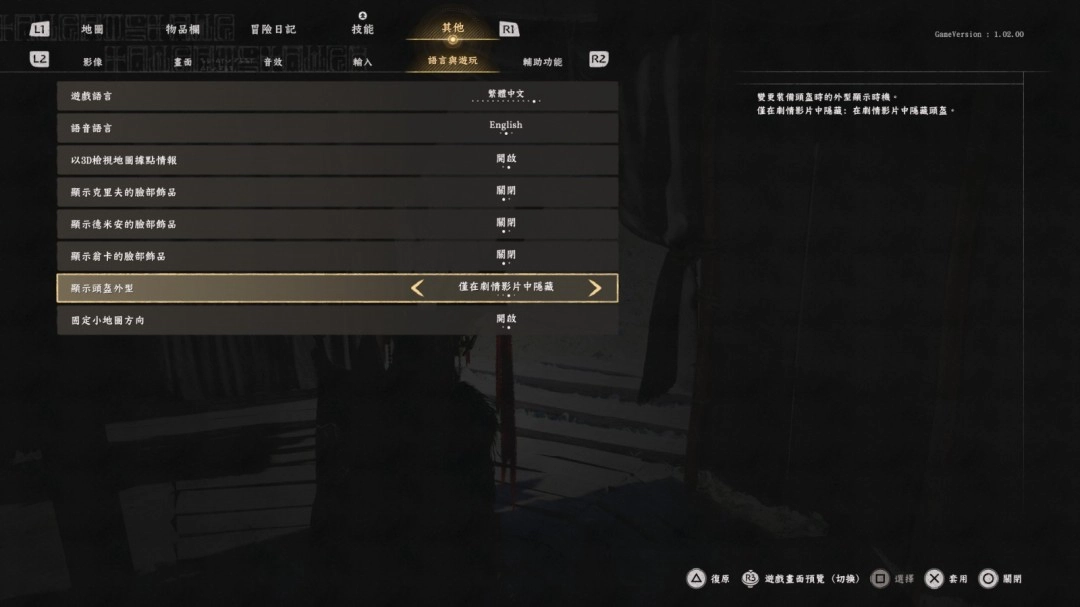 在设置 > 语言与游玩菜单里新增“显示头盔外形”选项。