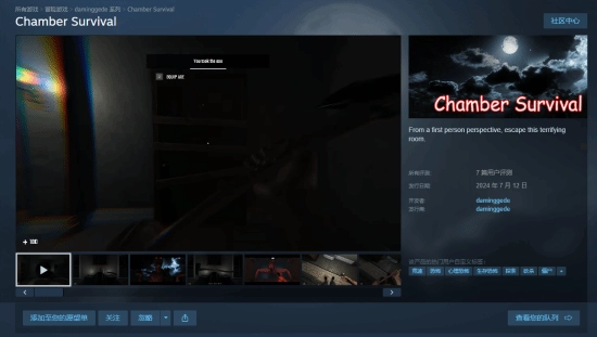 近日,由daminggede制作的第一人称生存恐怖游戏《Chamber Survival》在Steam平台开启了限时免费领取活动,该游戏国区原价62元,玩家可在4月10日凌晨1点前免费获取。
