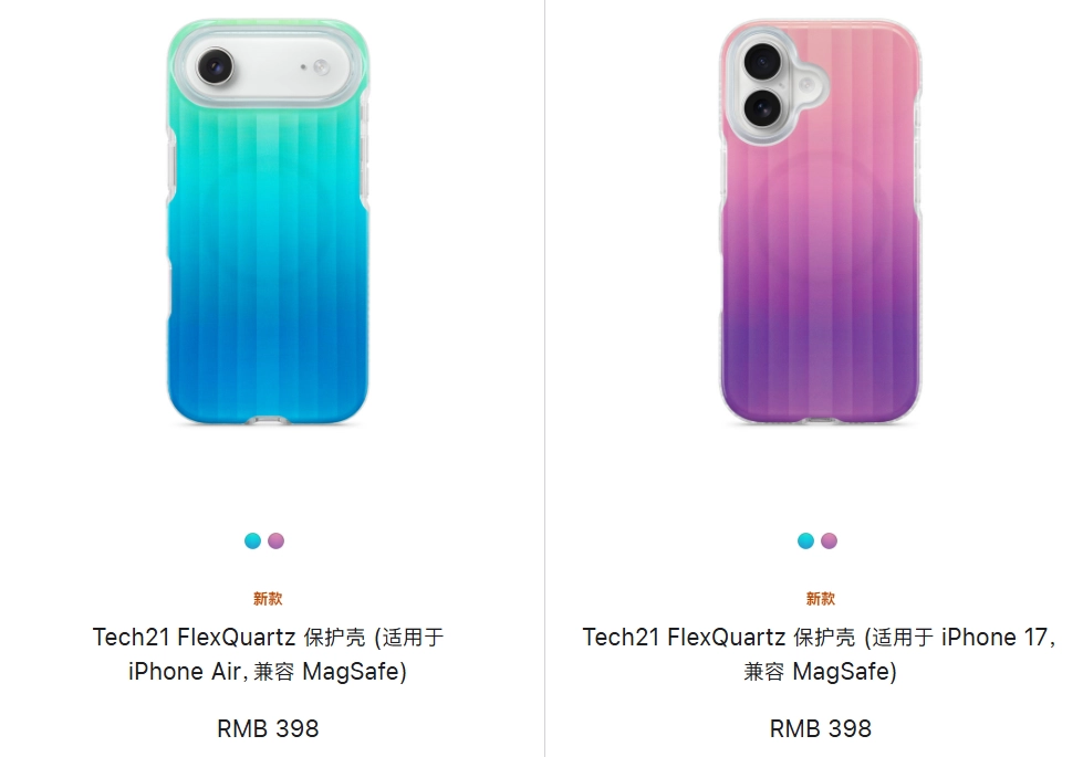除了上面说的斜挎包,这次同一时间上架的还有另一款配件:Tech21 FlexQuartz保护壳,国内卖398元起。
