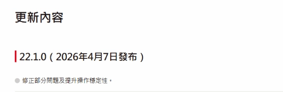 根据任天堂官网发布的公告,此次22.1.0版本系统更新的主要内容如下: