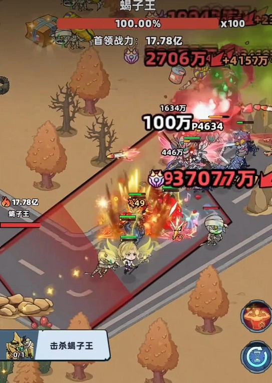 黑暗蝎子王初期的攻击节奏偏慢,发动攻击时会显现红色的攻击范围,处于这个范围内的敌人会被直接秒杀。不过这个技能其实很容易躲避,因为它有很明显的时间提示,玩家只要看到提示就立刻撤离,就能安全无伤。之后蝎子王会停在原地,这正是输出的最佳时机。