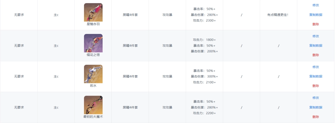 黑曜秘典 :通用选择,提供稳定的攻击力和暴击率加成。