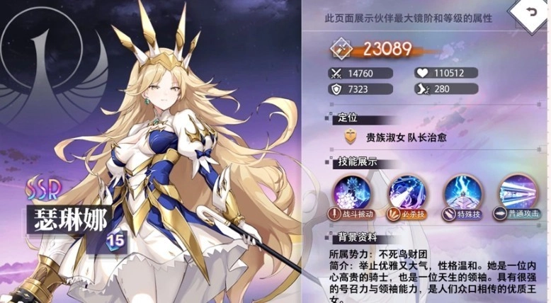《梦的第七章》里藏着超多待解锁的角色,今天想和大家好好聊聊其中的高人气角色——瑟琳娜。她的立绘精致得让人挪不开眼,优雅端庄的气质扑面而来。背景设定里,她不仅是身份尊贵的骑士,更是天生的领导者,有着出众的号召力和统领能力,整体人设相当出彩。接下来就详细讲讲瑟琳娜的实战强度和各项技能效果,希望能帮大家更清楚她在战斗中的作用与定位,搭配出合适的阵容,让她发挥出最强实力。