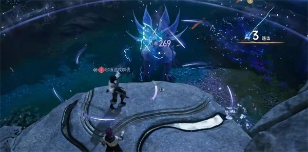 4、晨雷蜥蜴:它在地图墨焰阁的上面,跃渊桥的下面,攻击它把他拉到这个洞口旁边的平台处打,在这个平台上唯一需要注意的就是它的雷电圈,只有这一个技能可以打到我们,如果被电了就让队友救一下,没有队友直接点复活也不会脱离战斗。