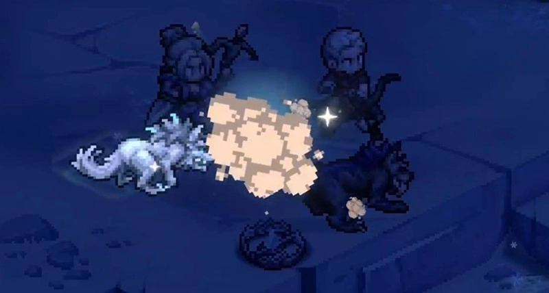 他的主动技能组合提供了丰富的战术选择。“随身家当”技能可以即时发射一枚单体冰霜地刺,或者释放一个扇形的冰属性范围伤害。“交给冰渣”技能则能触发芬恩与冰渣的位置互换,并为双方提供高额的物理减伤效果。这个技能组合还包含了治疗与净化功能,在交换位置的同时,能为双方恢复生命值并清除身上的负面状态。