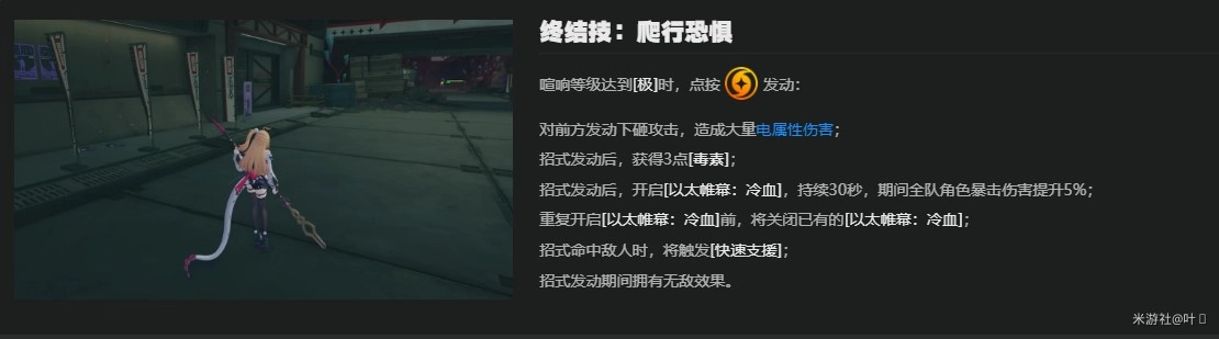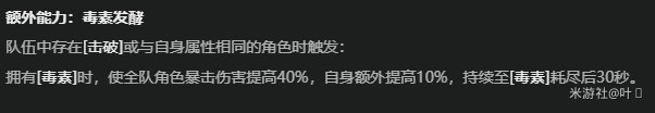 【额外能力】需击破角色或属性相同的角色才能触发,并且和【毒素】相关联。这个设定很直白,不必过多解释。