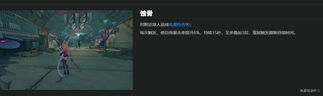 【蚀骨】本身是一段伤害,表现形式类似于异常效果对怪的附着,输出并不高。