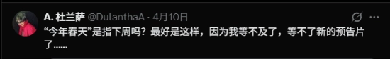有网友在评论区追问:这是否意味着下周会有State of Play发布会。帖子下一条高赞评论写道:“已经是春天了,所以……下周?”还有评论说:“State of Play要来了……”