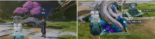 4、之后和观风对话,和旁边的树木互动就可以开启挑战,击败丰华硕木后就可以获得钥匙碎片3。