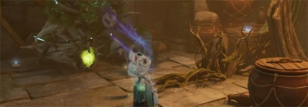 5、收集齐所有碎片后回到洞穴的屏障位置,把钥匙碎片放置到对应的位置上,屏障便会消失,之后触摸酒坛并与旁边的物品进行交互,就能获得幻灵。