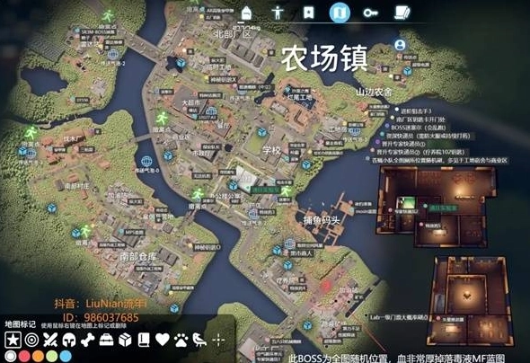 农场镇存在2个超高价值物资房,需要神秘钥匙X或者神秘钥匙O,物资房内会出现如显卡、Lab实验室钥匙卡、金徽章等超高价值物品。在钓鱼码头左侧山坡存在一个NPC商人,售卖武器配件,高级武器,顶级子弹,以及神秘钥匙O、神秘钥匙X与Lab实验室钥匙卡。