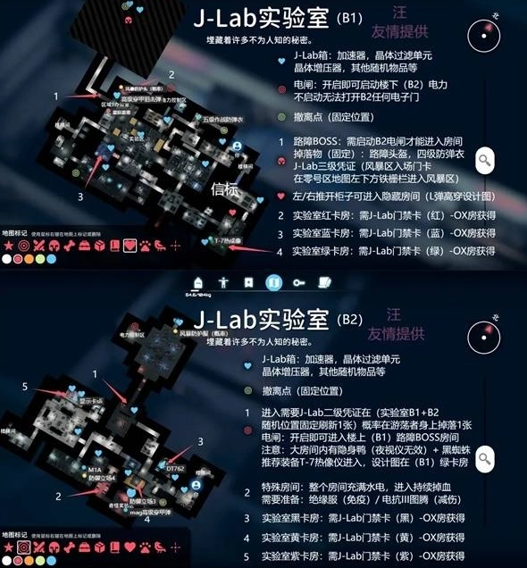 J-Lab实验室可以说是游戏中物资最丰富的地图,经过我测试即使没有实验室颜色卡,每次搜到5、6张显卡也是常有的事,另外实验室还存在一个彩蛋区域,没有准备贸然进入可能会瞬间回到基地。这个地图的小怪基本都是5级、6级的子弹,推进需要小心谨慎,需要注意的是,B2层在没有通电的时候,地图为纯黑且部分电子门是无法使用的。