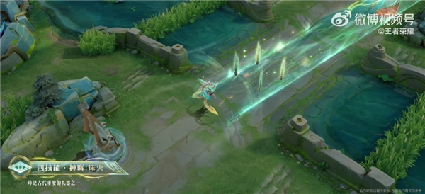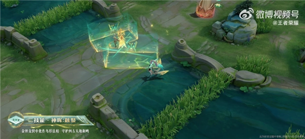 皮肤场景上,《王者荣耀》以三星堆眼形器、青铜神树、青铜鸟及兽型器为灵感,构建了一个眼形神坛中万物同息的视觉场景。