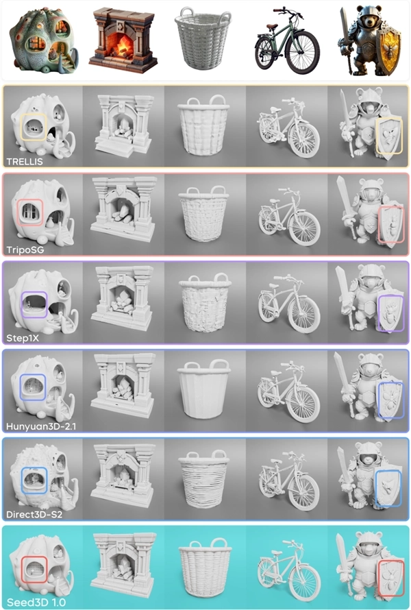 根据实测,Seed3D1.0几何生成参数更少,效果更优;纹理材质生成的图像保持性领先。