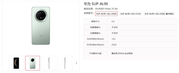 从机身数据可以看出,Mate70Air是一款完全重新设计的手机。