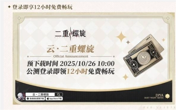 开放“云二重螺旋”限时活动,玩家可免费畅玩12小时,无需额外下载。