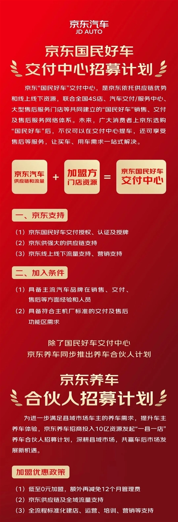 京东汽车重构汽车服务生态!正式启动“国民好车”交付中心招募,面向4S店、服务中心等发出邀请,同步搭配京东养车“一县一店”合伙人计划,构建“买车-交付-养车”全链条网络。合作方将获官方授权、供应链加持与线上流量扶持,用户则可享线上下单、就近提车、3000+门店售后的便捷体验!