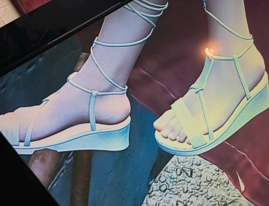 爱丽丝(Aerith): 她的脚更修长,显得更女性化,甚至脚底内侧有一个雀斑。由于她作为一名“法师”不需要进行大量体力运动,她的脚看起来比其他女孩更柔嫩。她穿着的凉鞋绑带也较少,更符合她不必担心在战斗中掉鞋的战斗风格。