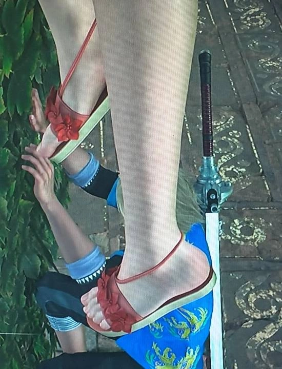 蒂法(Tifa): 她的脚更短、更具运动感,脚趾更粗短,脂肪感少于爱丽丝。这符合她以踢击作为主要战斗方式,且在战斗中需要大量跑动的设定。她的脚底外侧甚至有清晰可见的血管,显示出经常活动的特征。她的凉鞋也比爱丽丝的功能性更强。