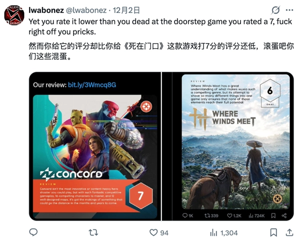 他们发现 IGN 给燕云打了 6 分,而《星鸣特攻》都有 7 分。