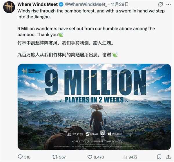 但至少目前,900 多万海外侠客们已经闯入了燕云的世界,好戏已经开演,江湖还远远没到散场的地步。