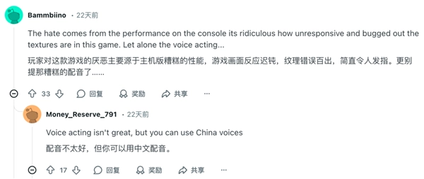 老外眼里的燕云倒也不是十全十美,像Reddit上,就有不少人在喷游戏主机版本稀烂。